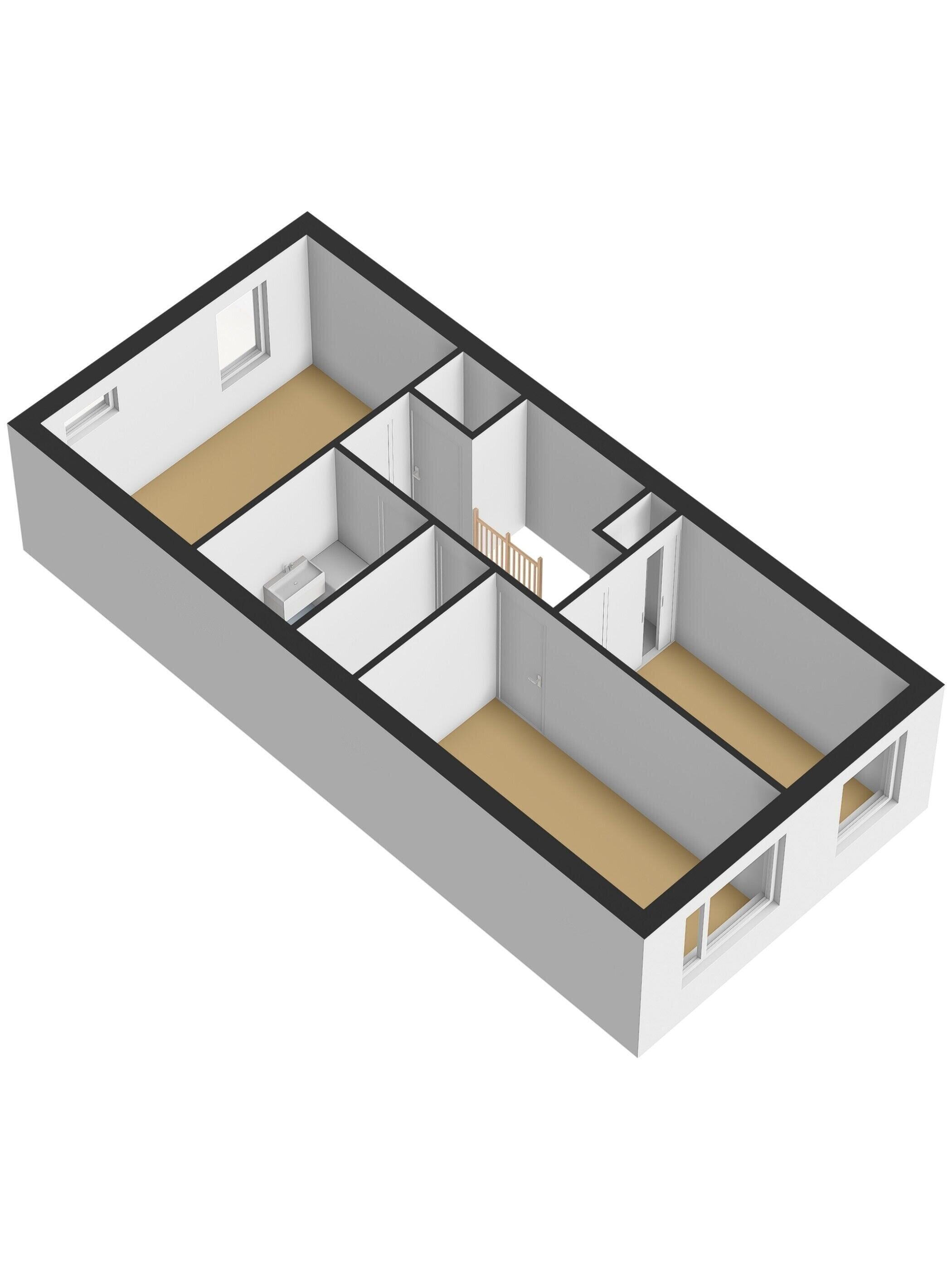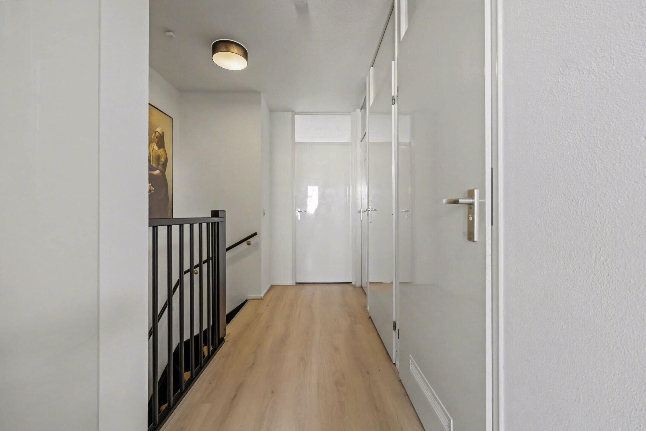 Op de eerste verdieping bevinden zich drie ruime slaapkamers, waaronder een royale slaapkamer over de volledige breedte van de woning. De badkamer is netjes uitgevoerd en voorzien van een inloopdouche, wastafelmeubel en de aansluiting voor de wasmachine en de droger.