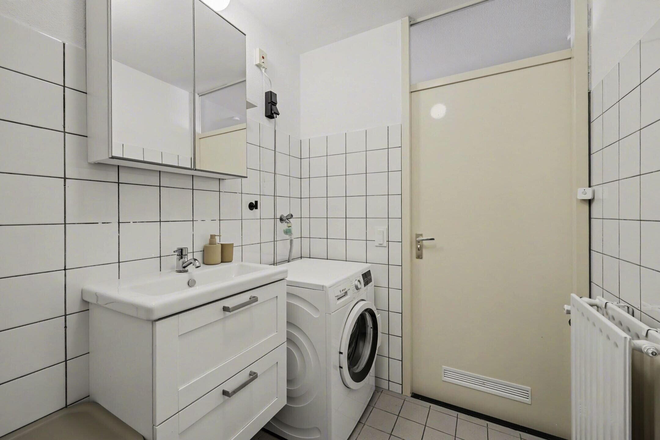 It is also possible to place the washing machine in the separate utility space where the central heating installation and ventilation system are currently located, which can provide additional comfort and a practical layout.