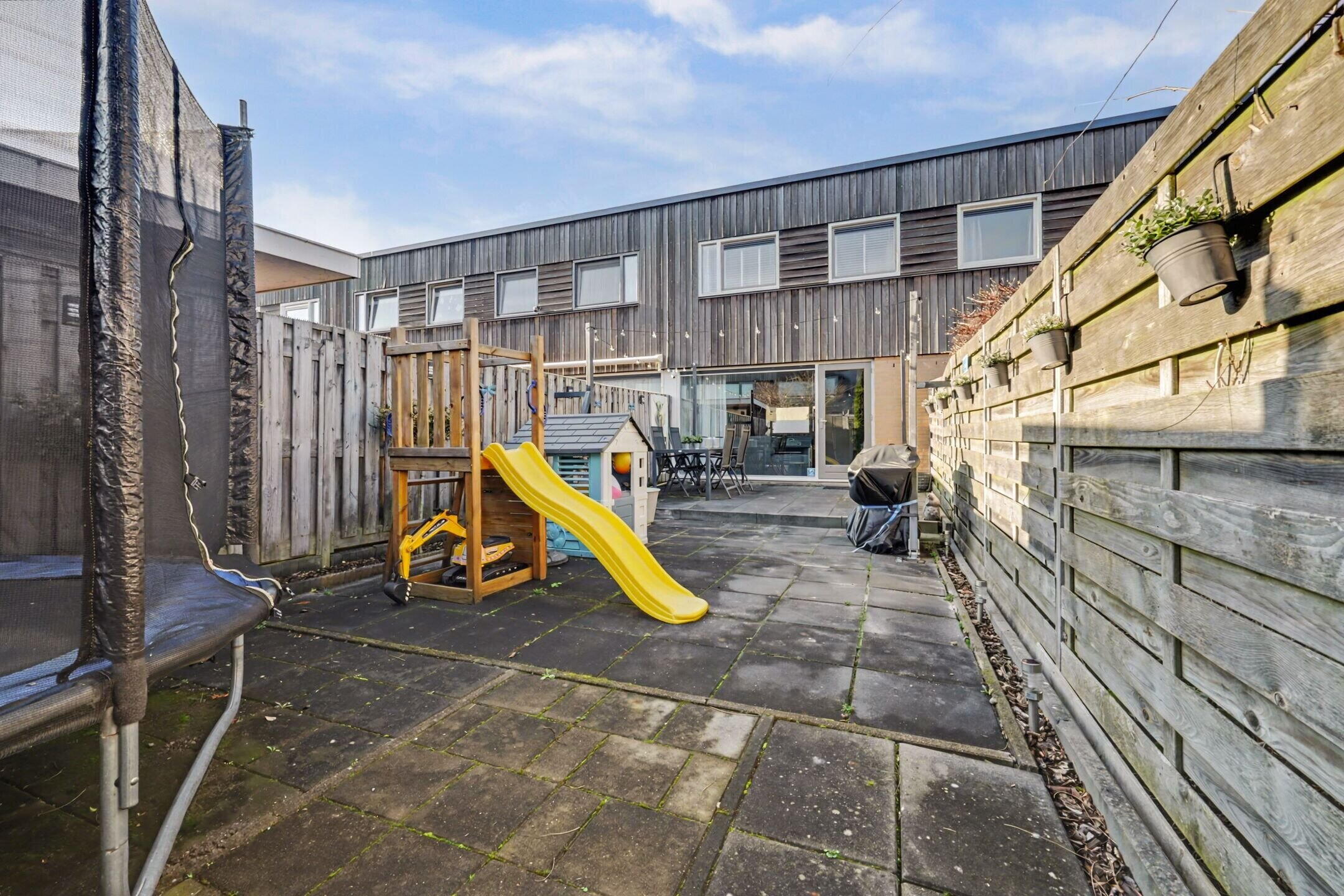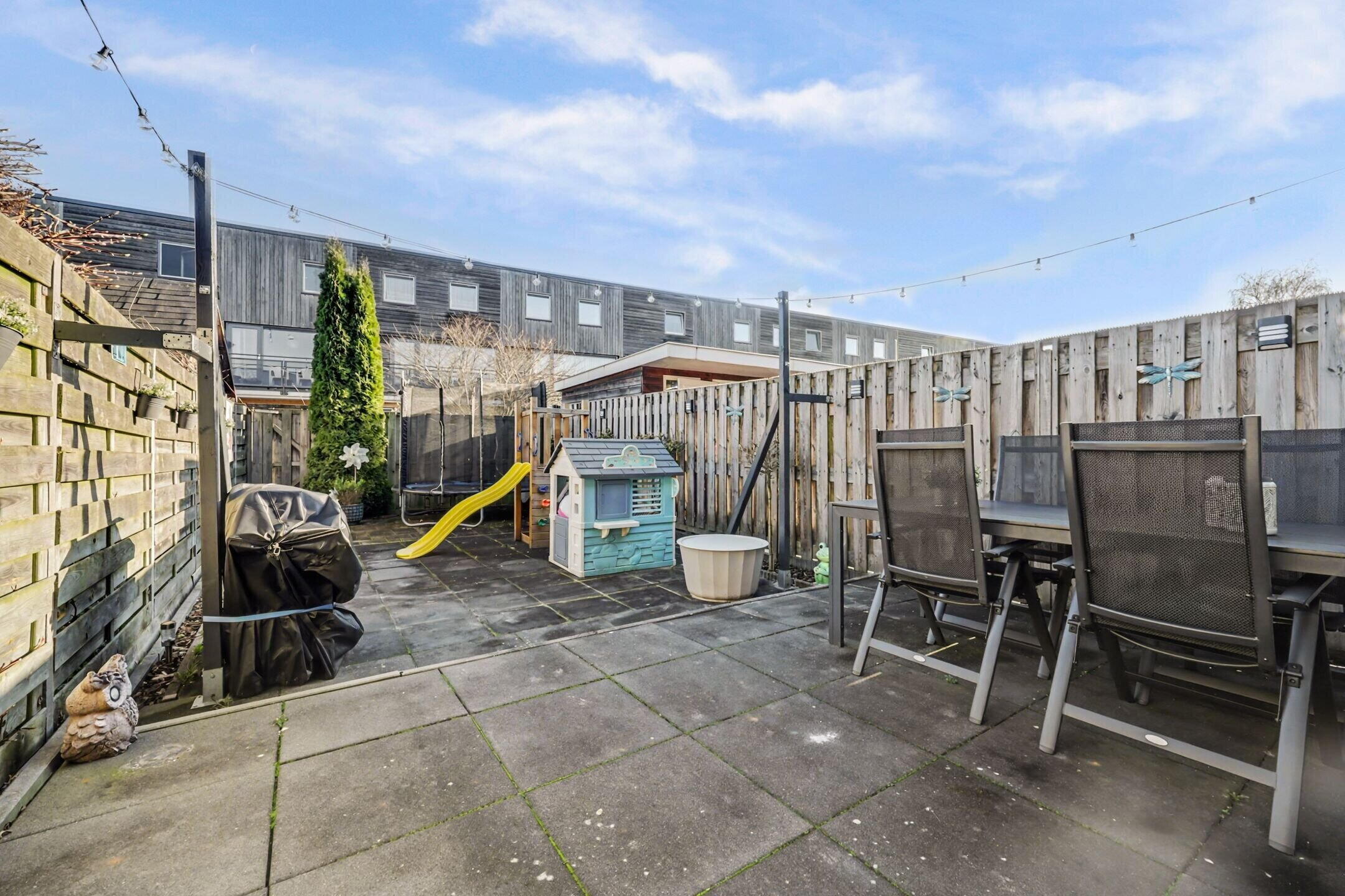 De achtertuin biedt volop ruimte voor een loungehoek, eettafel of speelruimte voor kinderen en is bereikbaar via een achterom. Hier geniet je van rust, privacy en een prettige buitenruimte die perfect aansluit bij het wooncomfort van de woning.